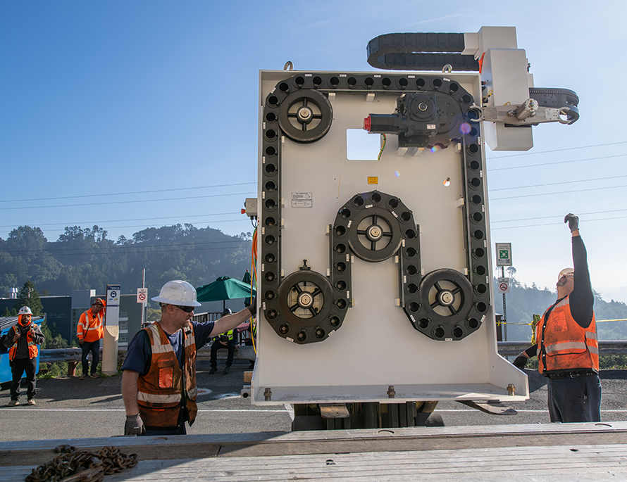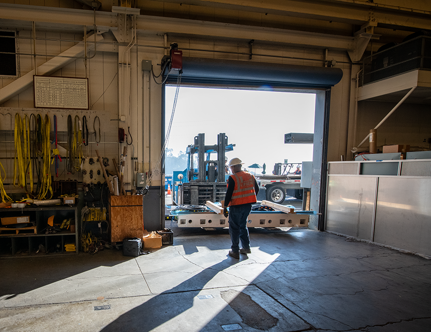 The machine was delivered to the Lab over a five-day period in early December 2025. It arrived in several pieces, some weighing up to 30,000 pounds. During the installation, riggers from the Facilities Division were on hand to support the project, using the Building 77 crane to move some of the components.